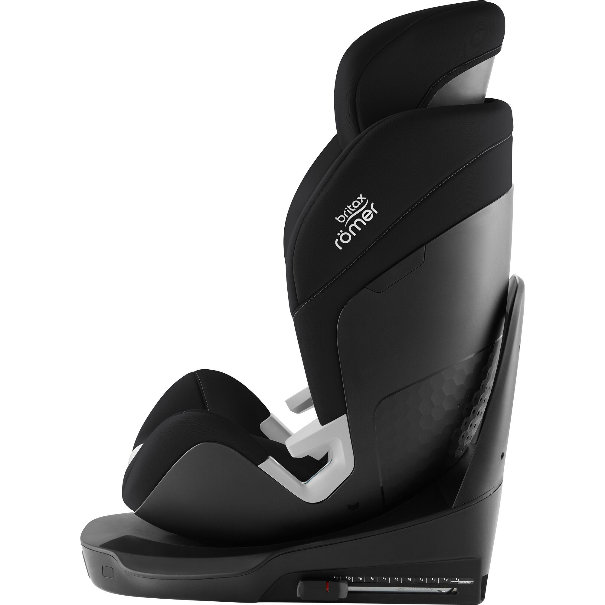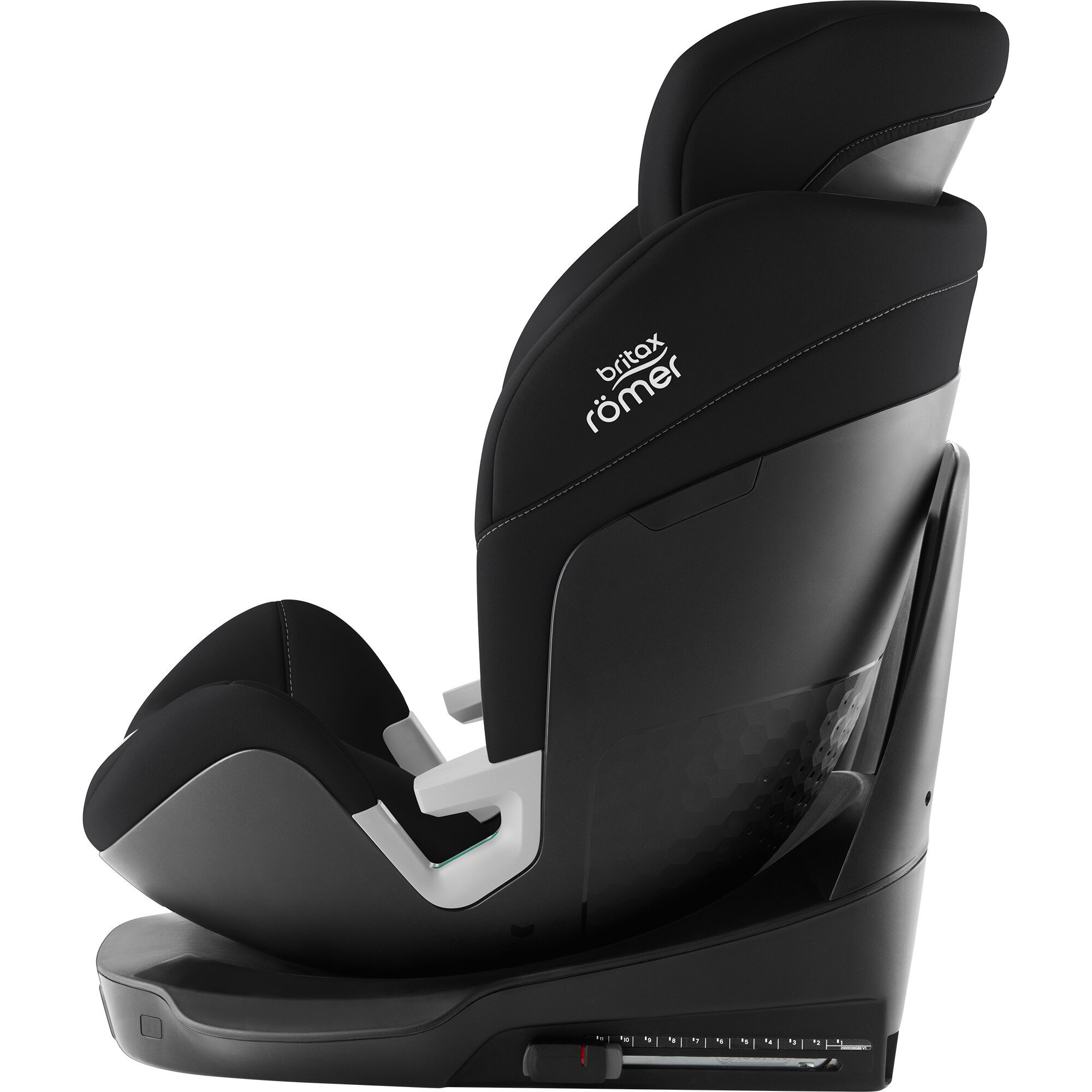 - Zajistěte optimální ochranu při bočním nárazu: opěrka hlavy ve tvaru písmene „V“ s energii pohlcujícími vidlicemi je speciálně navržena tak, aby omezovala pohyb hlavy dítěte, chránila jeho krk v případě nejhoršího a zároveň mu poskytovala prostor, když roste.