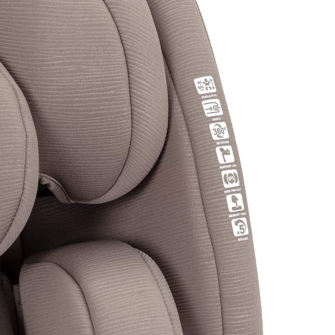 - Je vybavena ochranou proti bočnímu nárazu (SPS), systémem Isofix, opěrkou a možností otáčení o 360°.