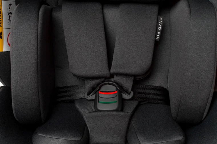 • Autosedačka Enzo-fix je integrována do otočné základny, která je vybavena systémem Isofix a stabilizační nohou spolu s indikátory správné instalace.