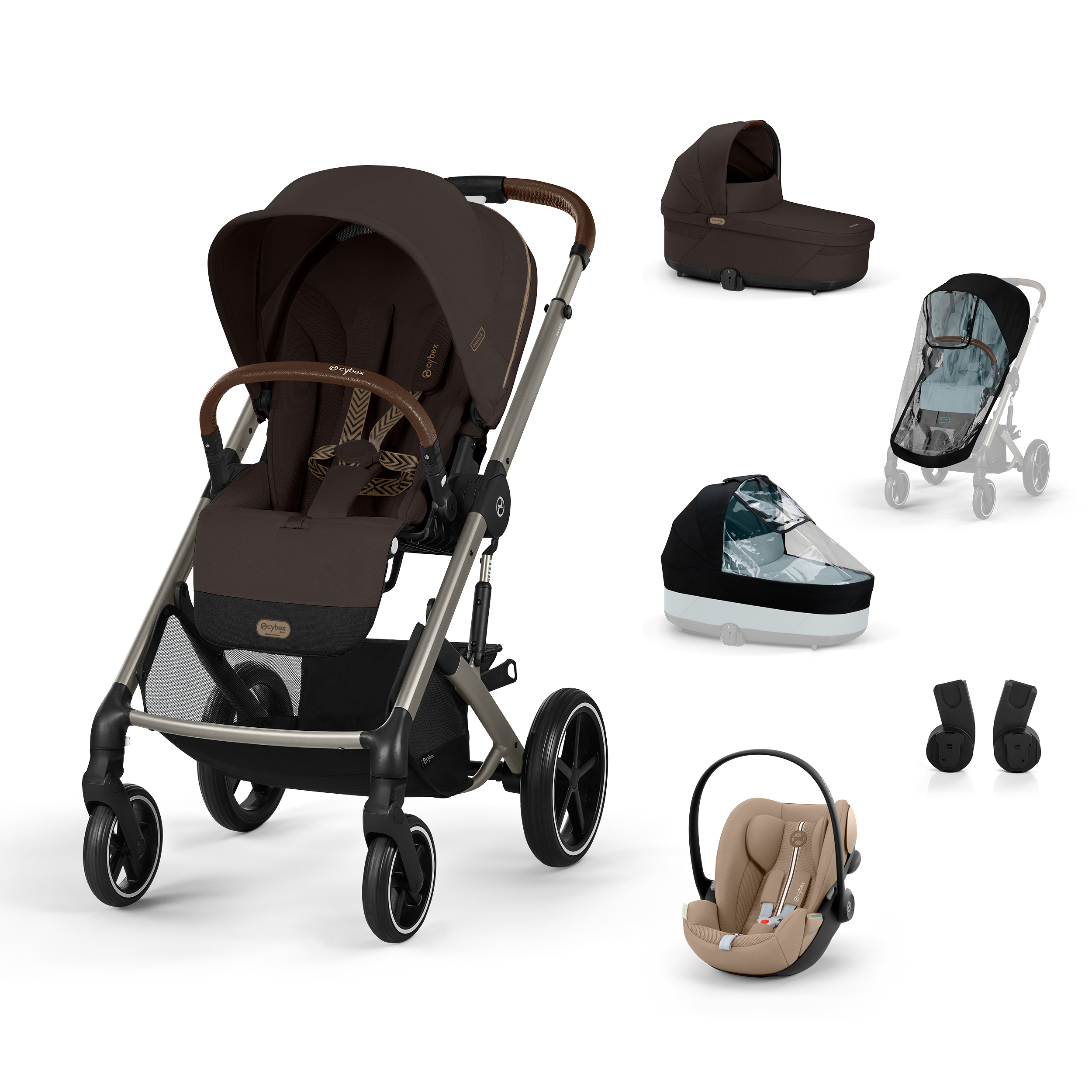 Spojení kočárku Cybex Balios S Lux, prostorné hluboké korbičky, prémiové autosedačky Cybex Cloud G i-Size Plus, adaptérů a dvou originálních pláštěnek tvoří dokonale sladěnou sestavu pro každodenní používání.