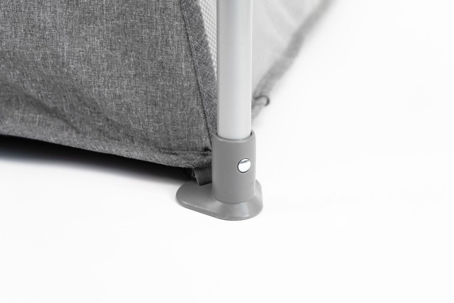 • Nízká hmotnost ohrádky (5 kg) a montáž v několika krocích usnadňují přenášení, cestování i používání v různých místnostech.
