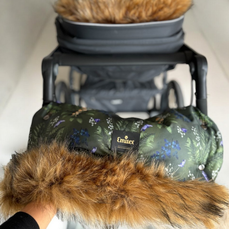 • Připevňuje se jednoduše na rukojeť kočárku pomocí kvalitních zapínacích druků. Uvnitř rukávníku je dostatek místa pro manipulaci i s rukojetí, která má ruční brzdu.