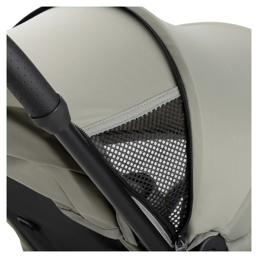 • Sluneční stříška s UV ochranou 50+ nabízí příjemný stín, zatímco síťovaná okénka poskytují dostatečnou cirkulaci vzduchu.