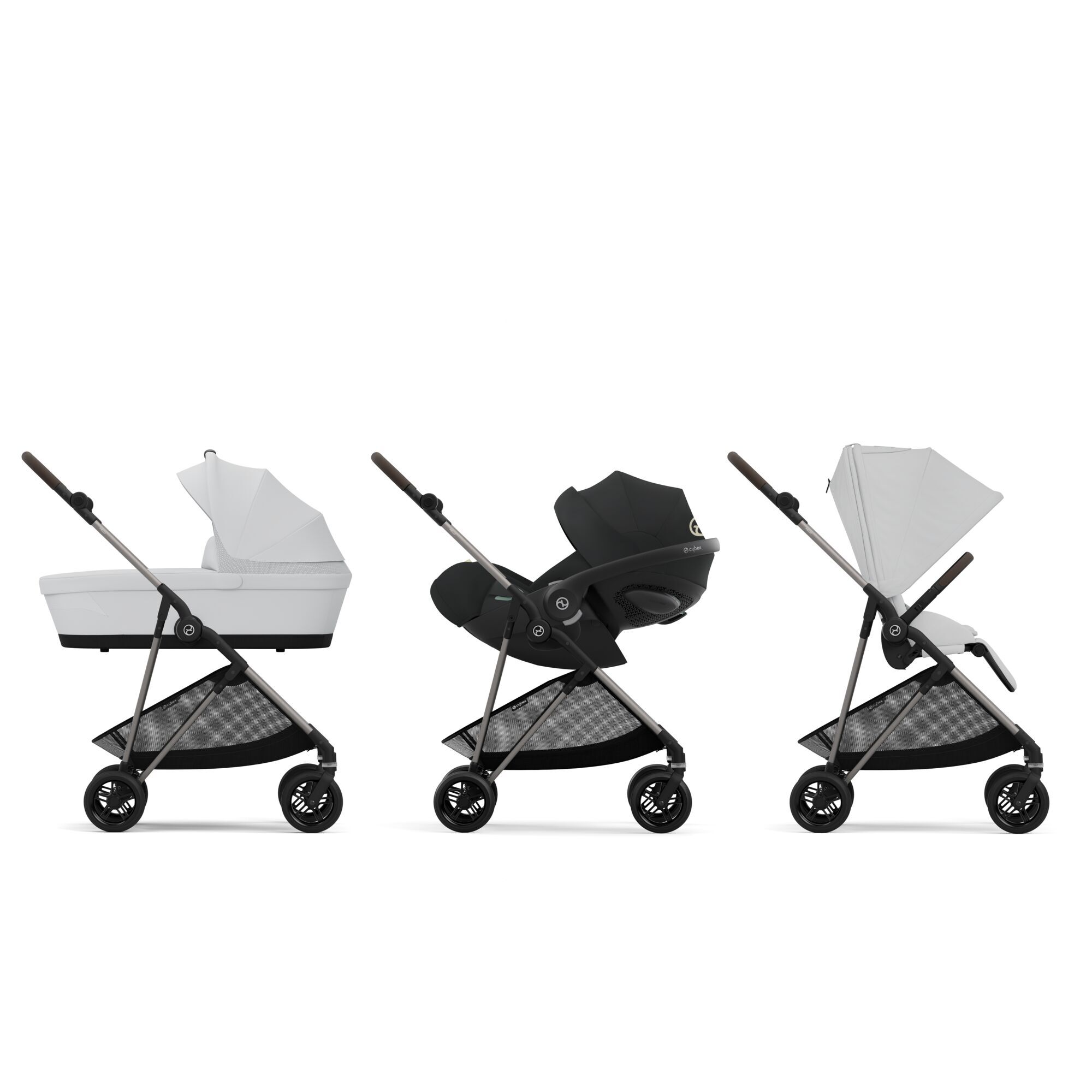 • Jeden kočárek, čtyři způsoby procházky. Připojte Melio Cot, Cocoon S, dětskou autosedačku nebo jednotku sedačky a přizpůsobte kočárek pro jakoukoliv cestu.