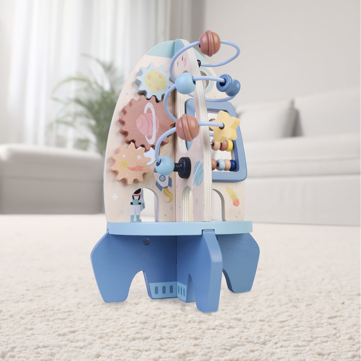 - Dřevěná aktivity raketa je vhodná pro chlapce i holčičky a nabízí interaktivní prvky, které upoutají pozornost každého dítěte.