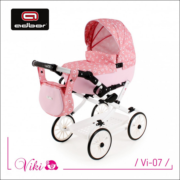Kočárek pro panenky Adbor Viky je elegantní a kvalitně zpracovaný model, který potěší každou malou maminku.