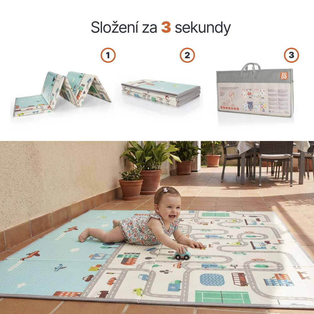 Podložku snadno složíte během několika vteřin do kompaktního tvaru. Díky přenosné tašce ji můžete pohodlně vzít kamkoliv s sebou.