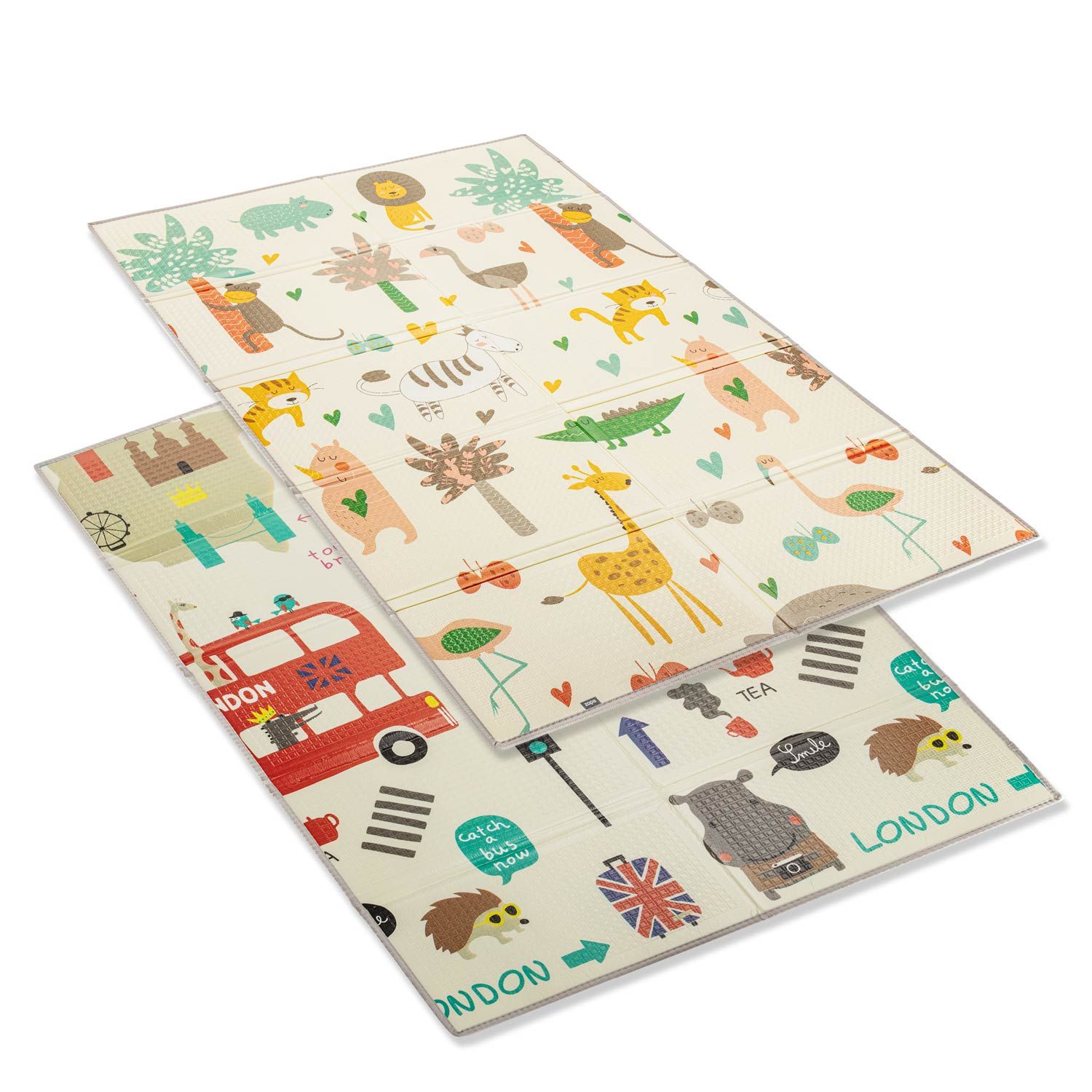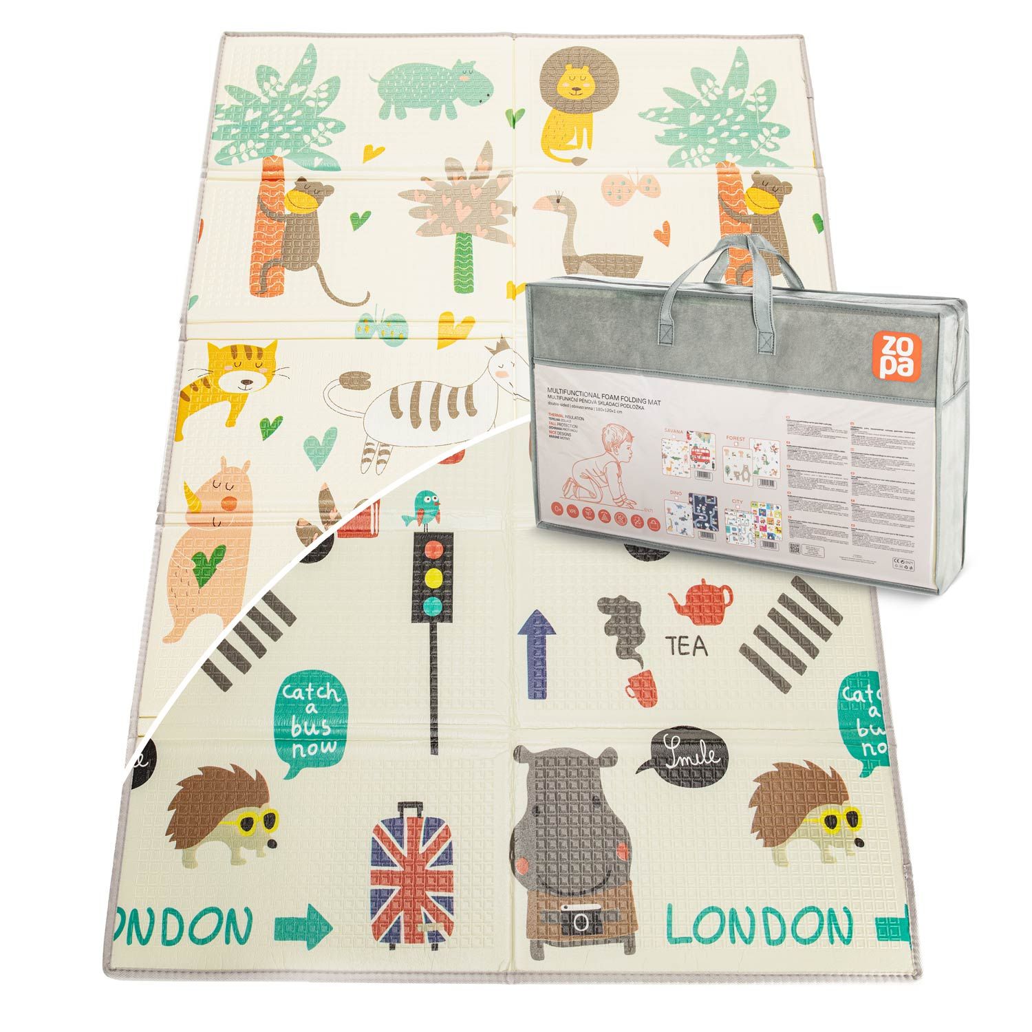 Díky oboustrannému provedení můžete snadno měnit vzhled podložky podle nálady nebo interiéru. Veselé motivy podporují fantazii a rozvíjejí kreativitu dítěte.