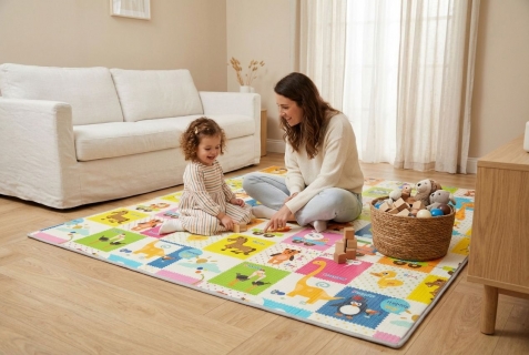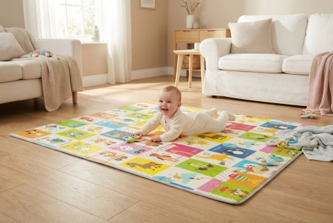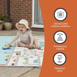 Měkká, ale zároveň dostatečně pevná pěna chrání dítě před tvrdou podlahou a tlumí nárazy při pádech. Podložka vytváří ideální prostor pro lezení, hraní i odpočinek.