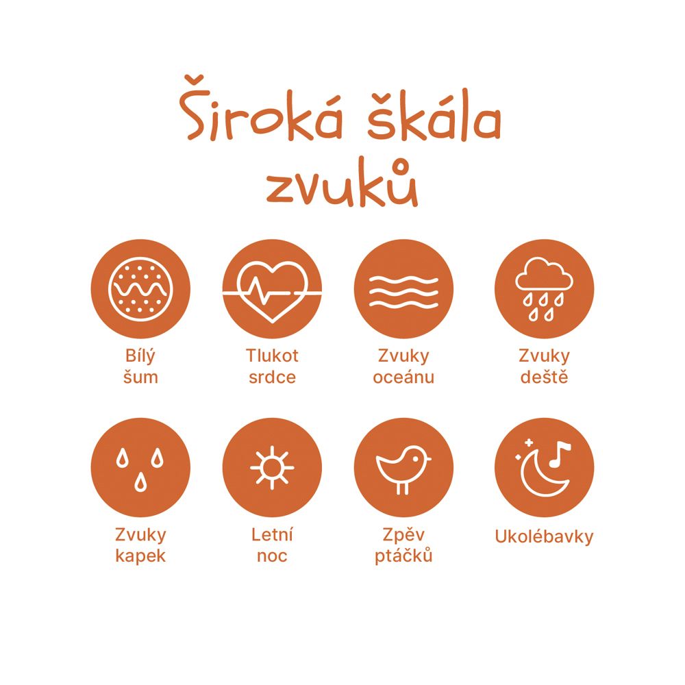 Kdy dostanu zboží? Prémiový usínací modul s bílým šumem, uklidňujícími zvuky a jemným světlem pomáhá miminkům snadno usnout doma i na cestách – bezpečně, pohodlně a kdekoli.