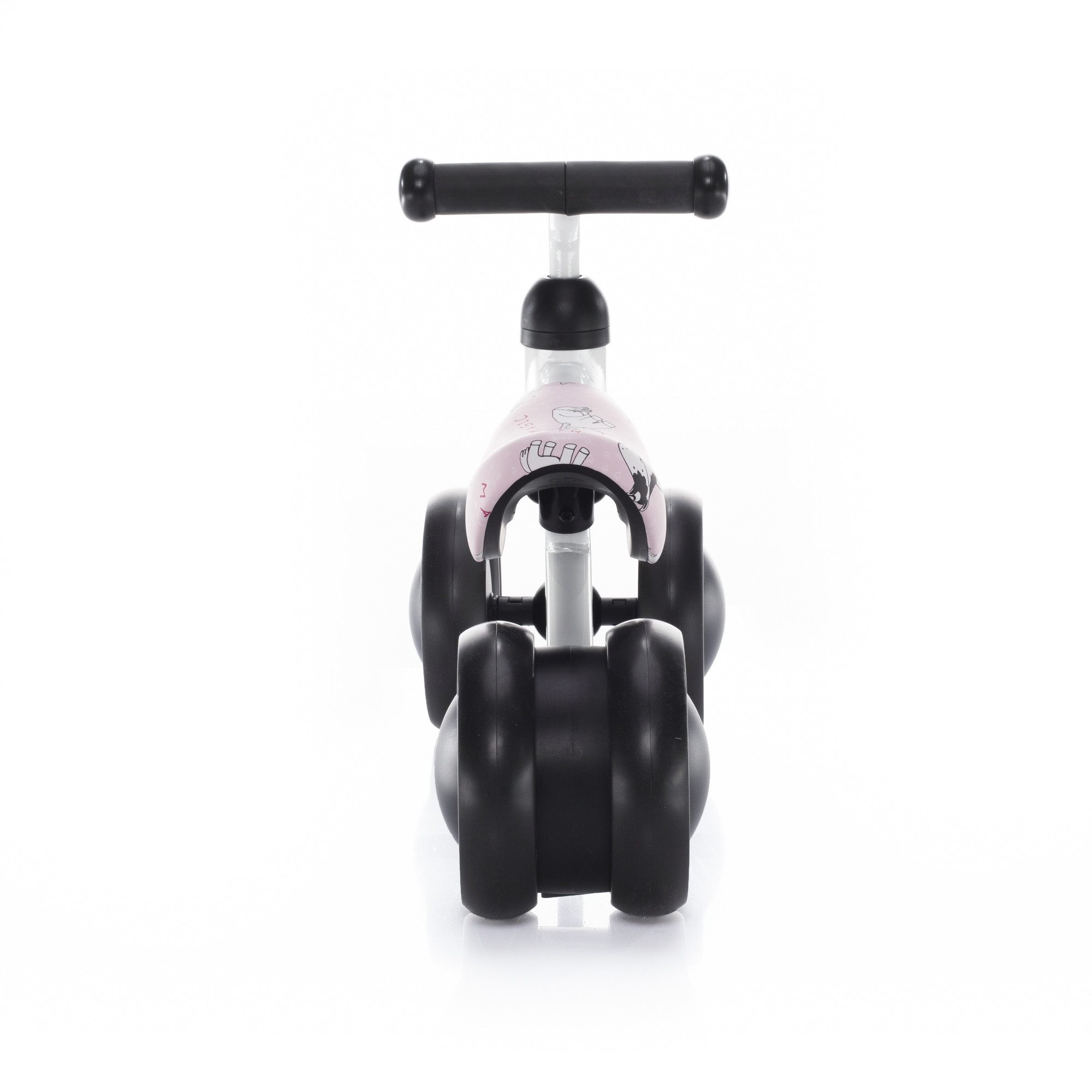 Dětské odrážedlo s kovovou konstrukcí a systémem tichých kol.