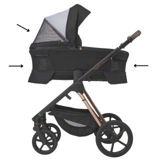 Kočárek zaujme také novým designem konstrukce s luxusní eco kůží, ochrannými prvky proti poškození při skládání a čtyřnásobným ventilačním systémem pro optimální cirkulaci vzduchu. Kolekce 2026 přináší nové 3D dekorativní prvky, elegantní tašku pro rodiče a exkluzivní barevné varianty 303 Unique Dove, 309 Tasty Cappuccino a 319 Perfect Beige.