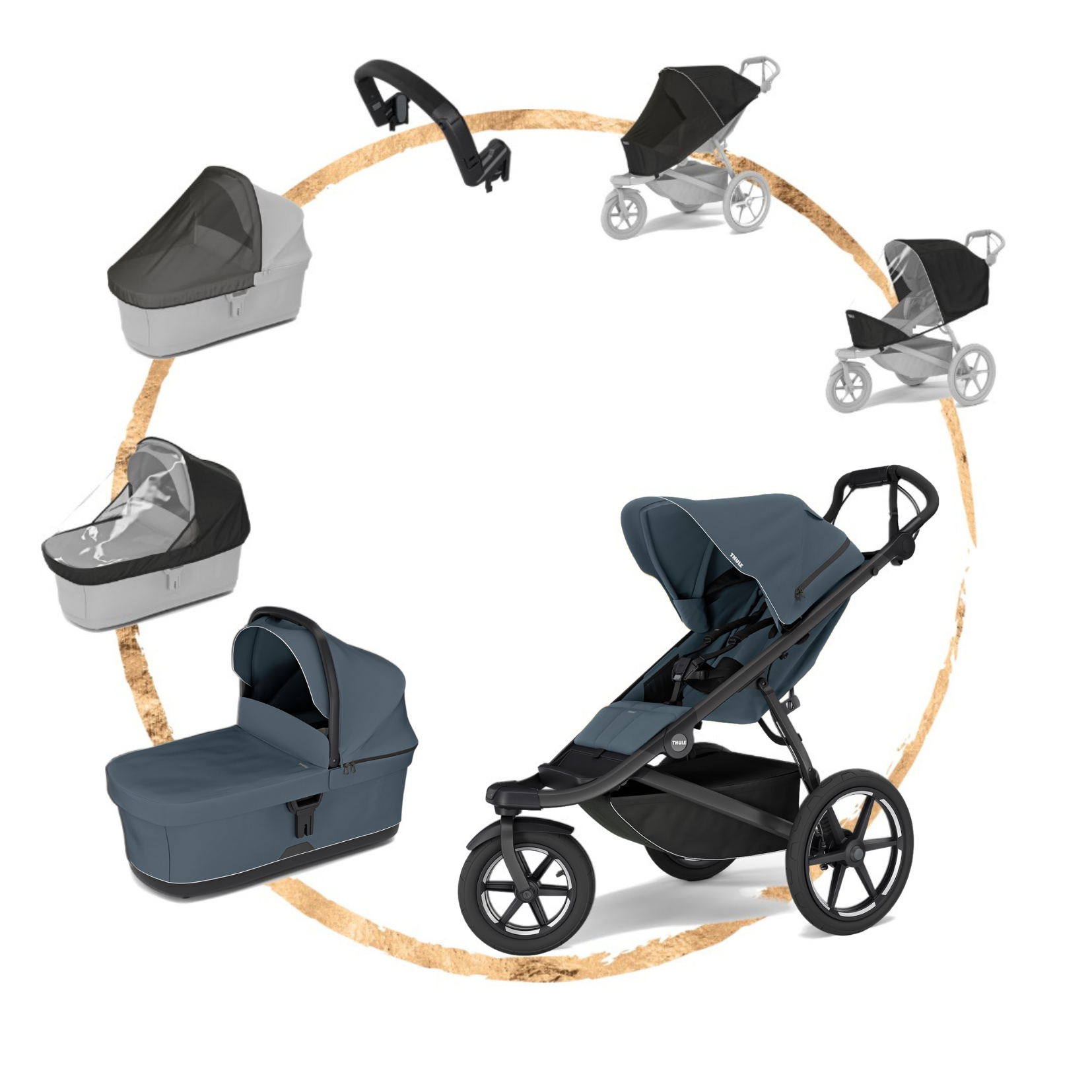 • Sportovní kočárek Thule Urban Glide 3, hlubokou korbičku Thule, pláštěnku na hlubokou korbičku, síť proti hmyzu na hlubokou korbičku, madlo na sportovní kočárek, pláštěnku na sportovní kočárek, síť proti hmyzu na sportovní kočárek