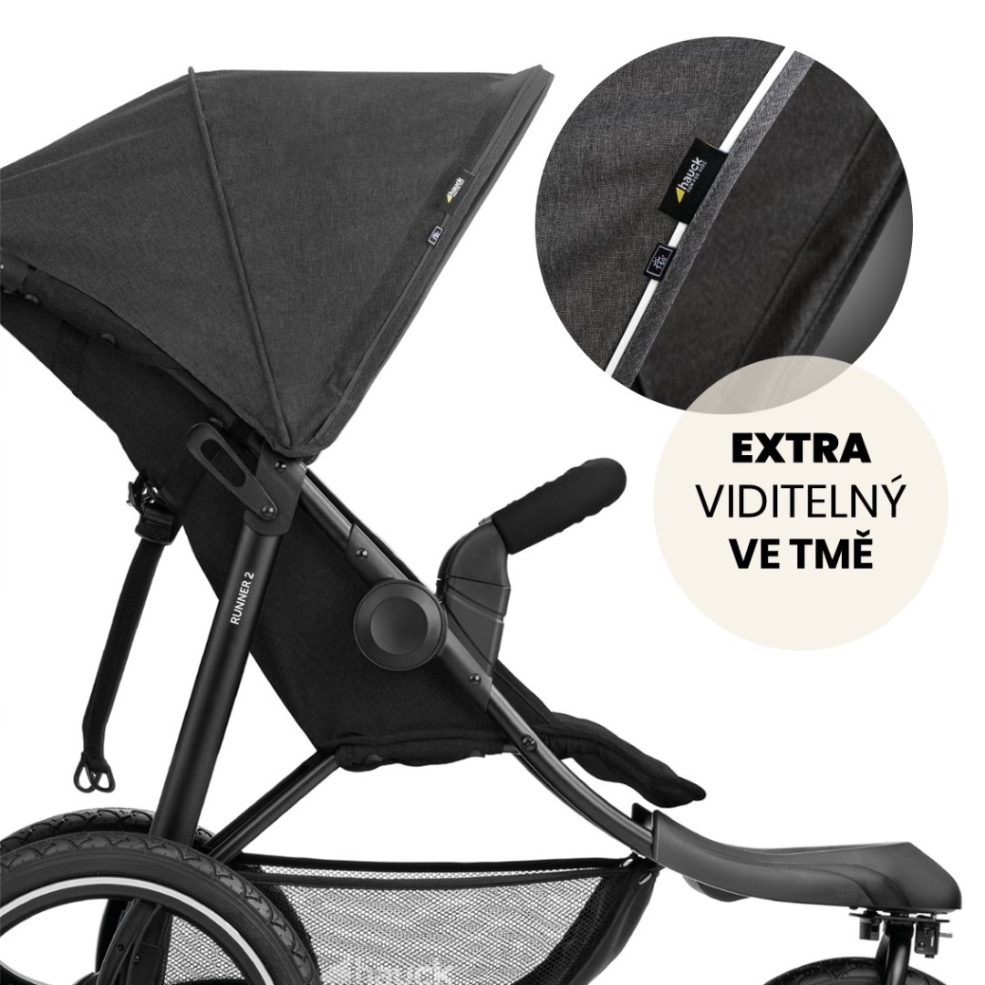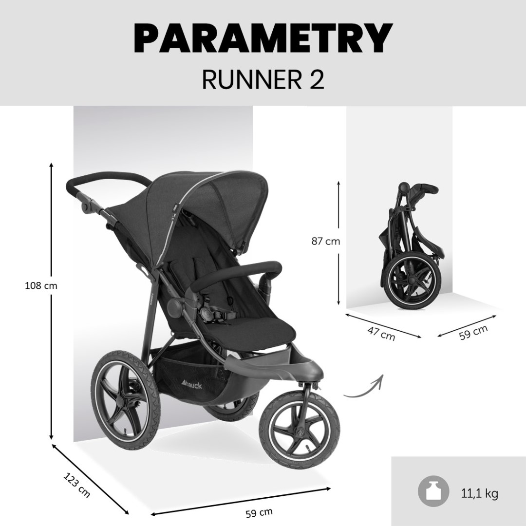 Terenní kočárek Runner 2 značky Hauck je skvělý společník nejen na nákupy, ale i výlety. Mimořádně velká vzduchová kola zajistí pohodlí pro vaše dítě během ve městě i v přírodě. XL sedačka s možností polohy v leže zajistí klidný spánek během vycházky.
