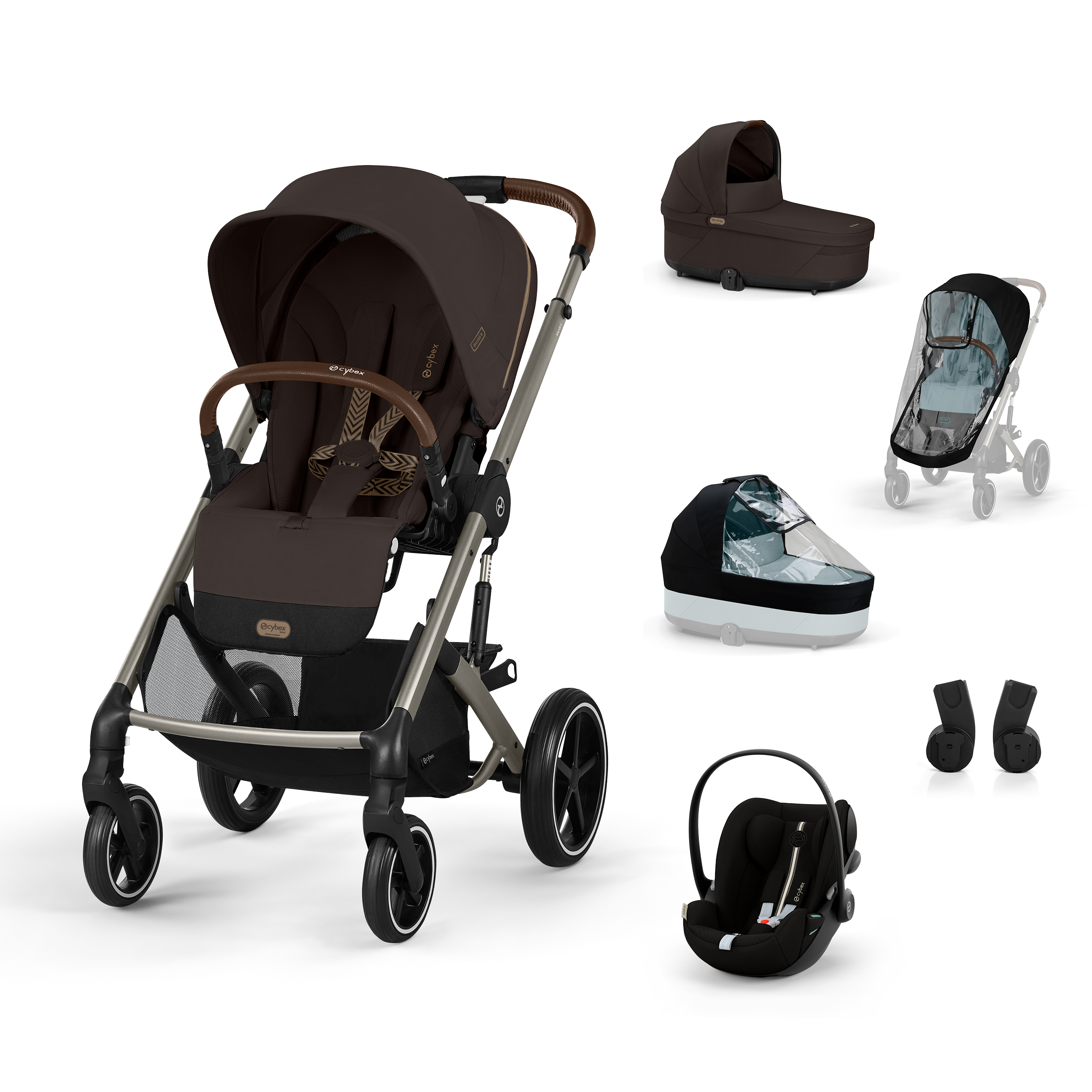 Spojení kočárku Cybex Balios S Lux, prostorné hluboké korbičky, prémiové autosedačky Cybex Cloud G i-Size Plus, adaptérů a dvou originálních pláštěnek tvoří dokonale sladěnou sestavu pro každodenní používání.