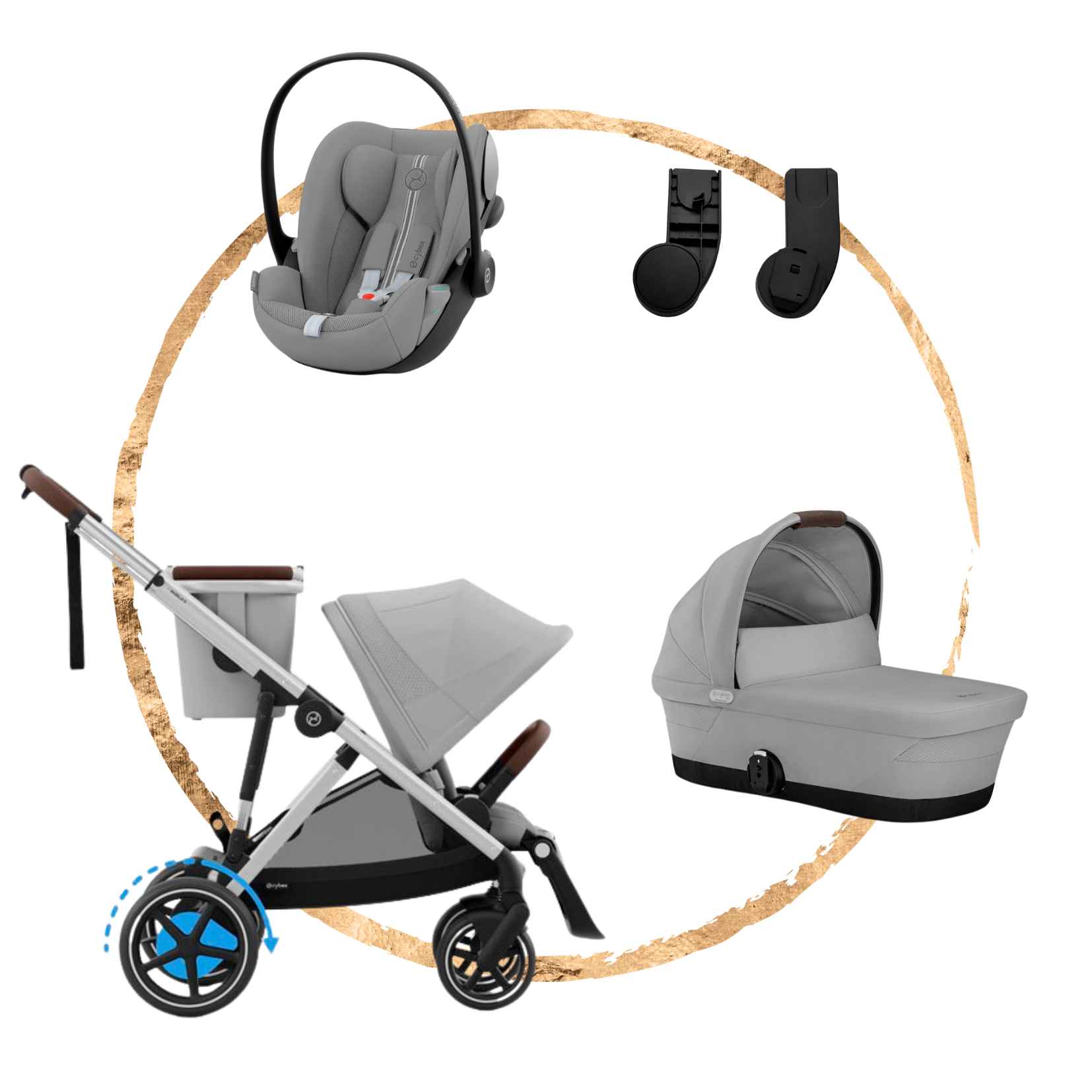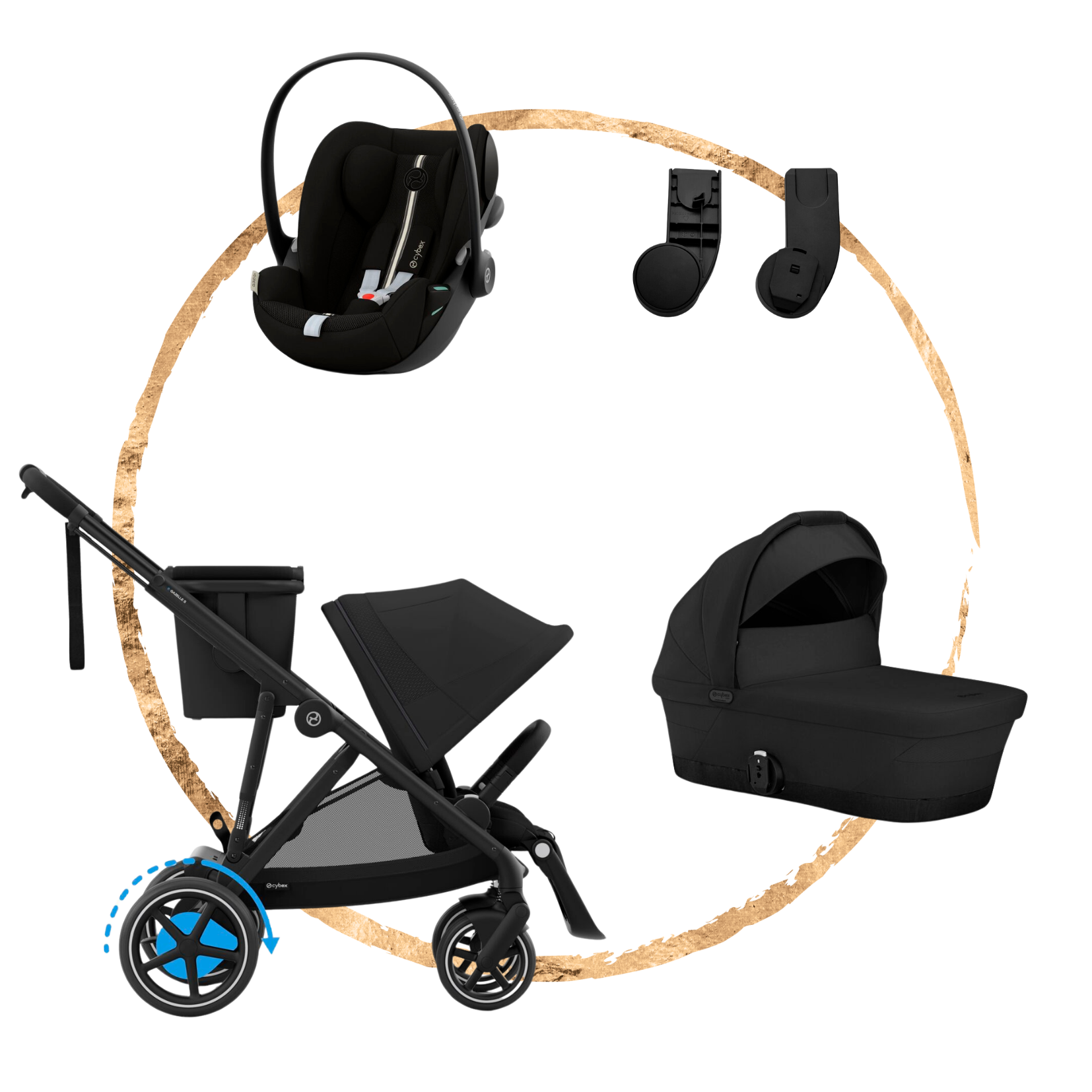 Prémiová kombinace elektrického kočárku Cybex e-Gazelle S, prostorné hluboké korbičky Gazelle S a špičkové autosedačky Cybex Cloud G i-Size Plus nabízí maximální flexibilitu pro moderní rodiny.