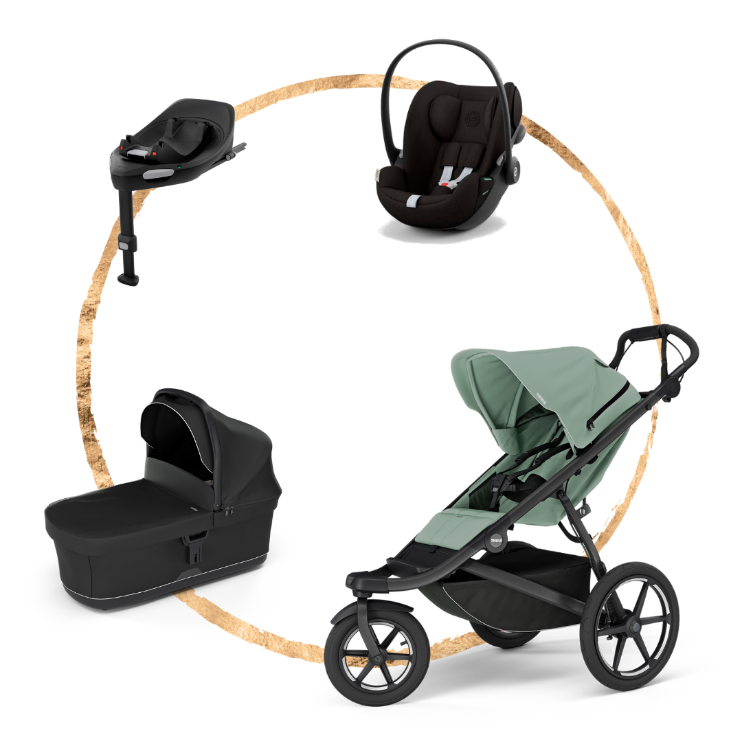 Set kočárku Thule Urban Glide 3 + hluboká korbička + autosedačka Cybex Cloud G + báze Cybex G. Vše, co potřebujete pro bezpečný a stylový start s vaším miminkem – v jednom dokonale sladěném setu.