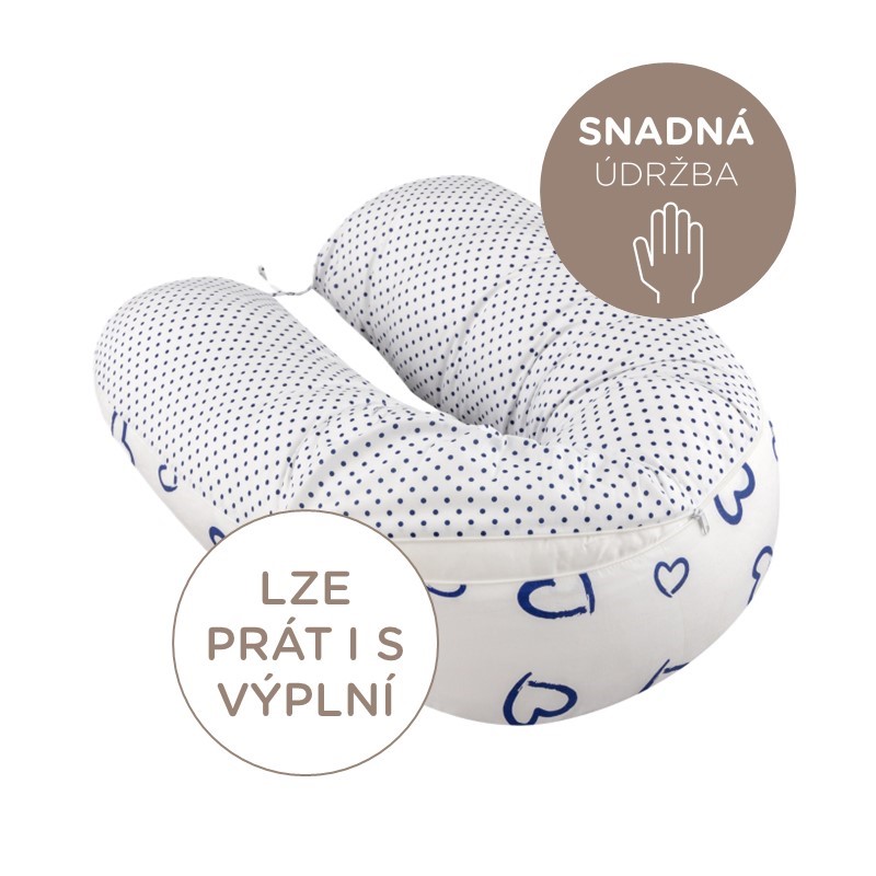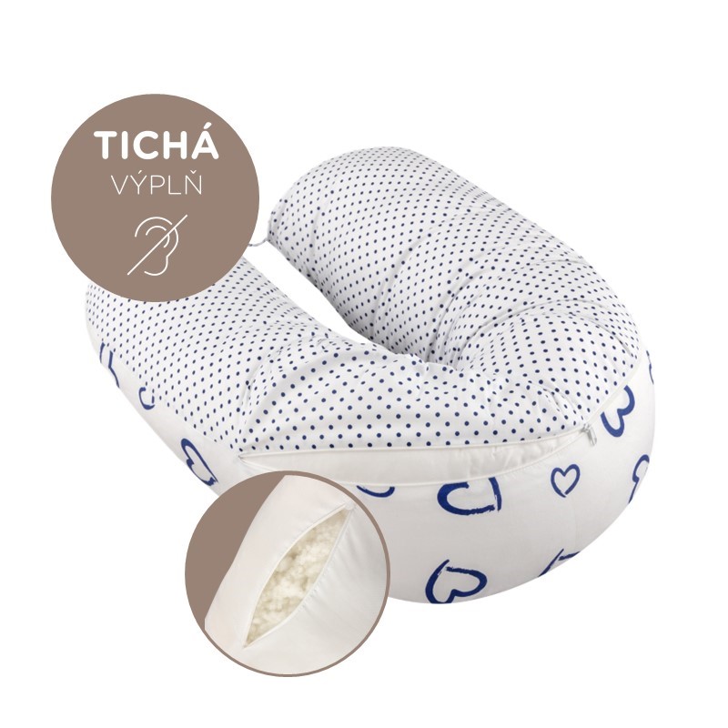 Kojící polštář Bomimi ADOS Srdíčka + puntíky modrá/bílá