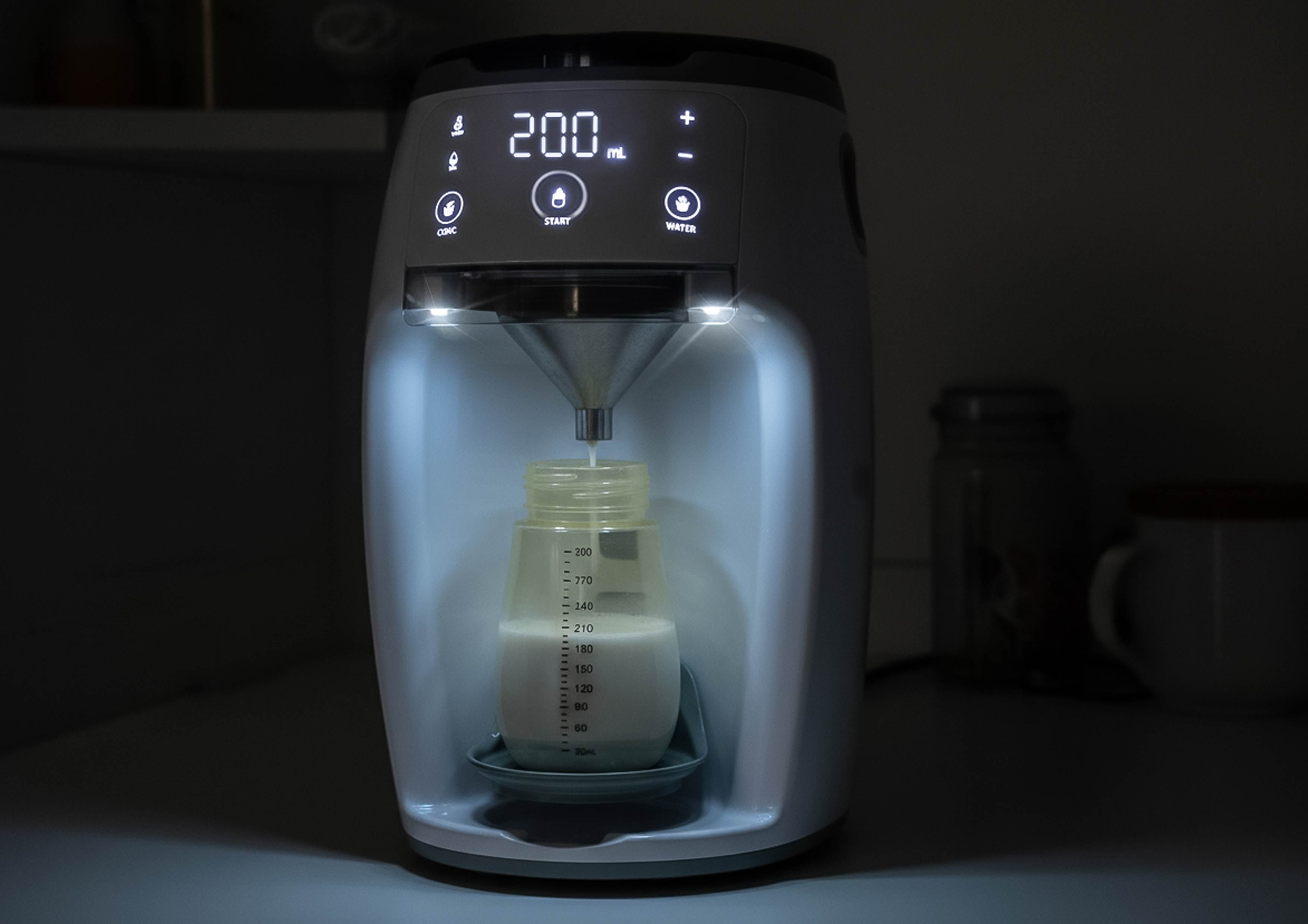 Funguje podobně jako automatický kávovar – jen místo kávy připraví dokonale namíchané mléko pro vaše miminko během několika vteřin.
