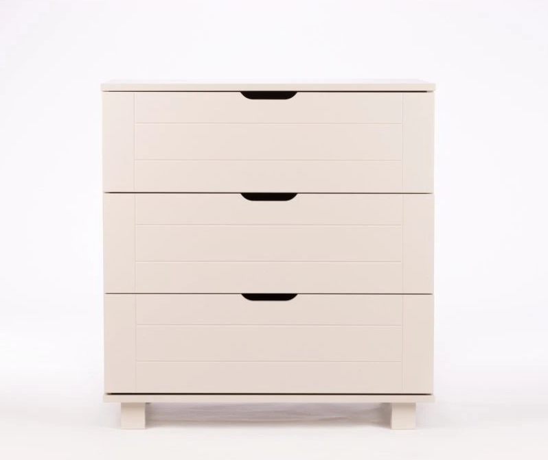 Komoda nabízí tři prostorné zásuvky na kuličkových pojezdech, díky nimž je otevírání tiché a plynulé.