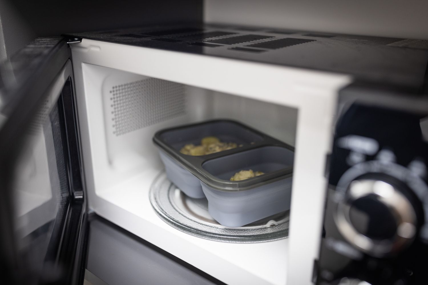 Potravinářský silikon, skládací, 2 samostatné oddíly, dobře těsnící víčko, vhodný do mikrovlnné trouby