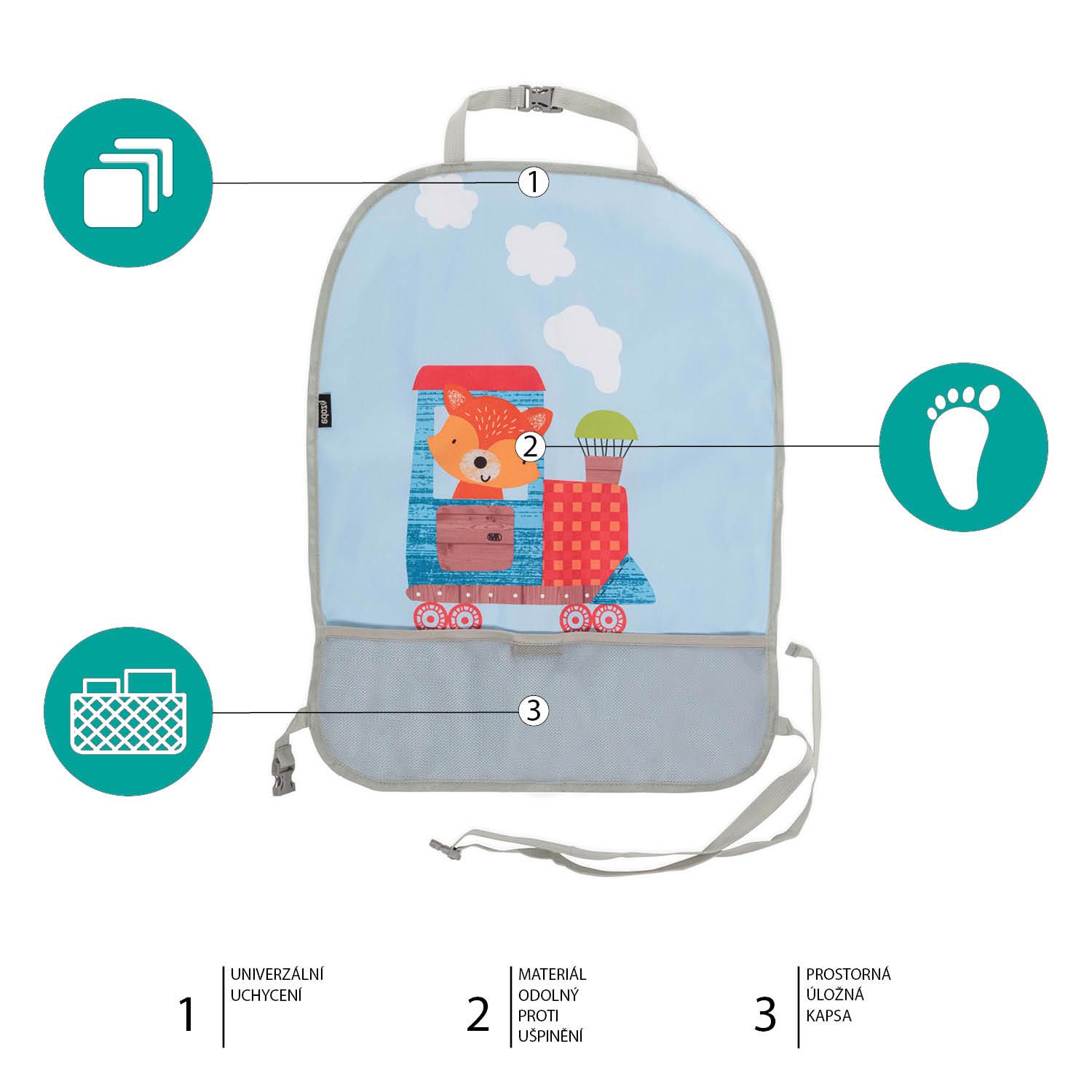 Roztomilý organizér díky široké kapse pojme velké množství věcí. Upevníte jej jednoduše na zadní část předního sedadla.