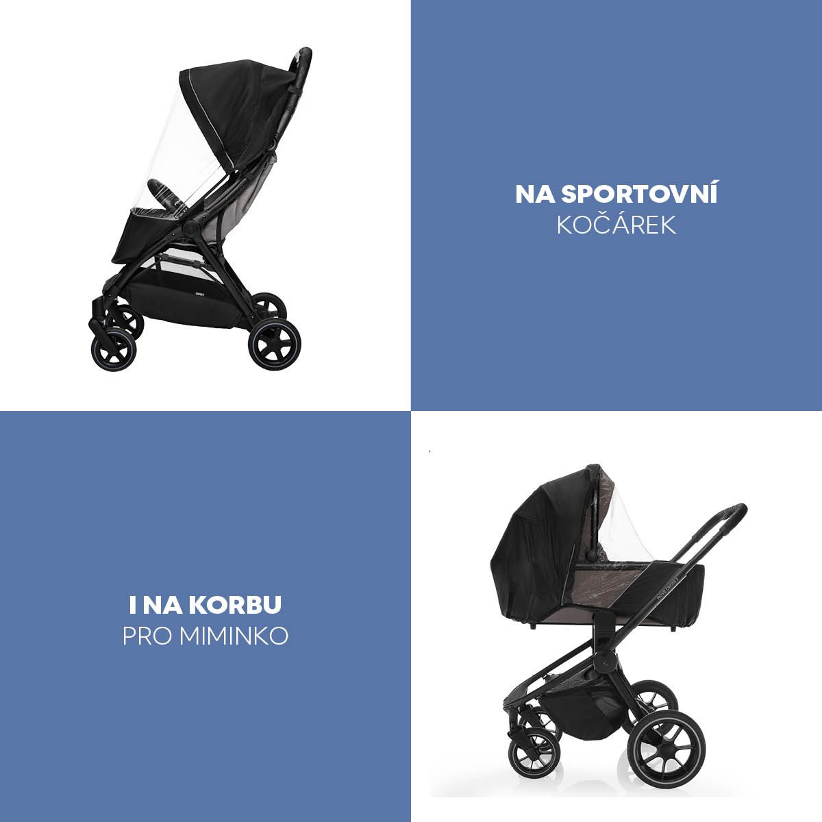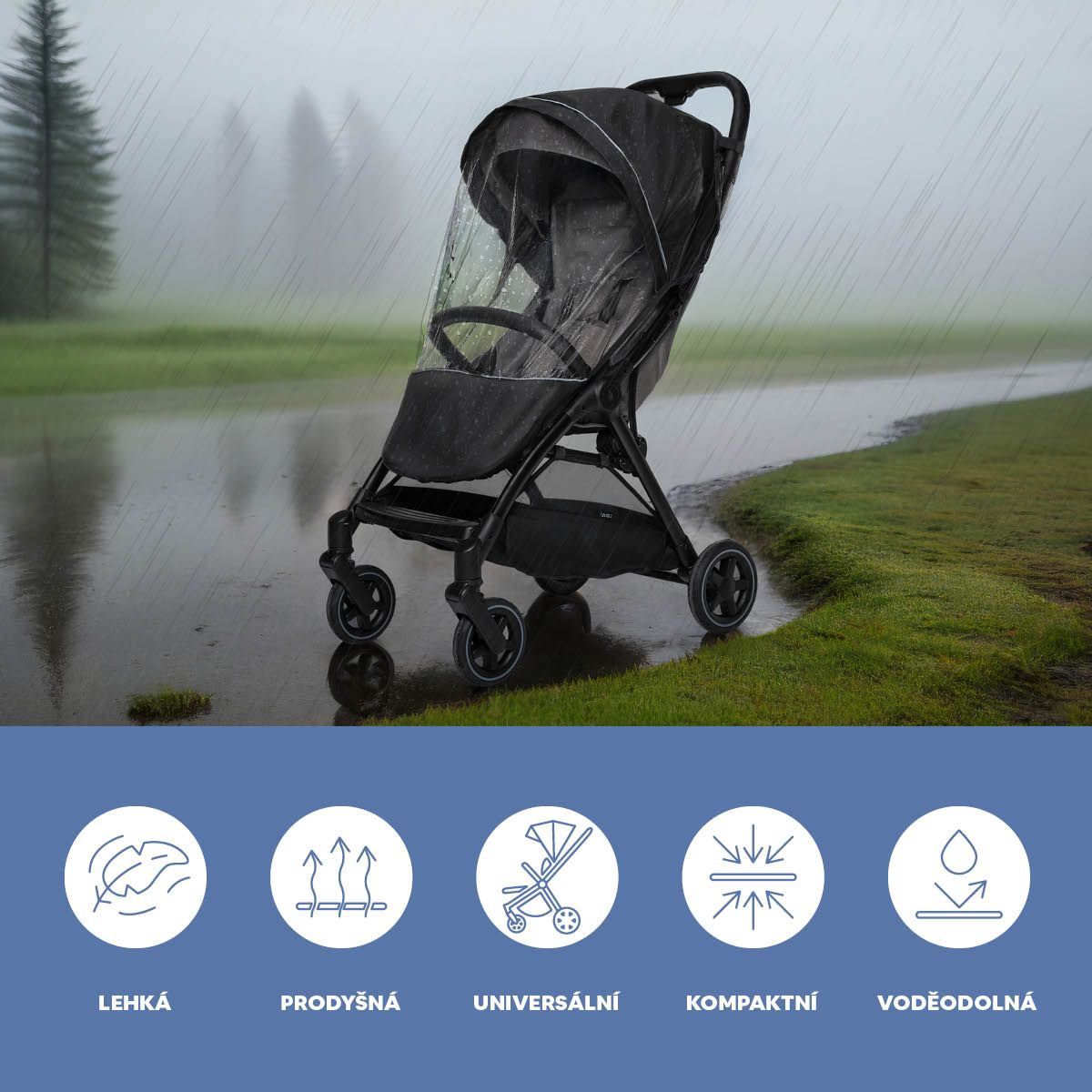 Spolehlivá ochrana proti dešti, větru i hmyzu – pasuje na sportovní sezení i hlubokou korbu.