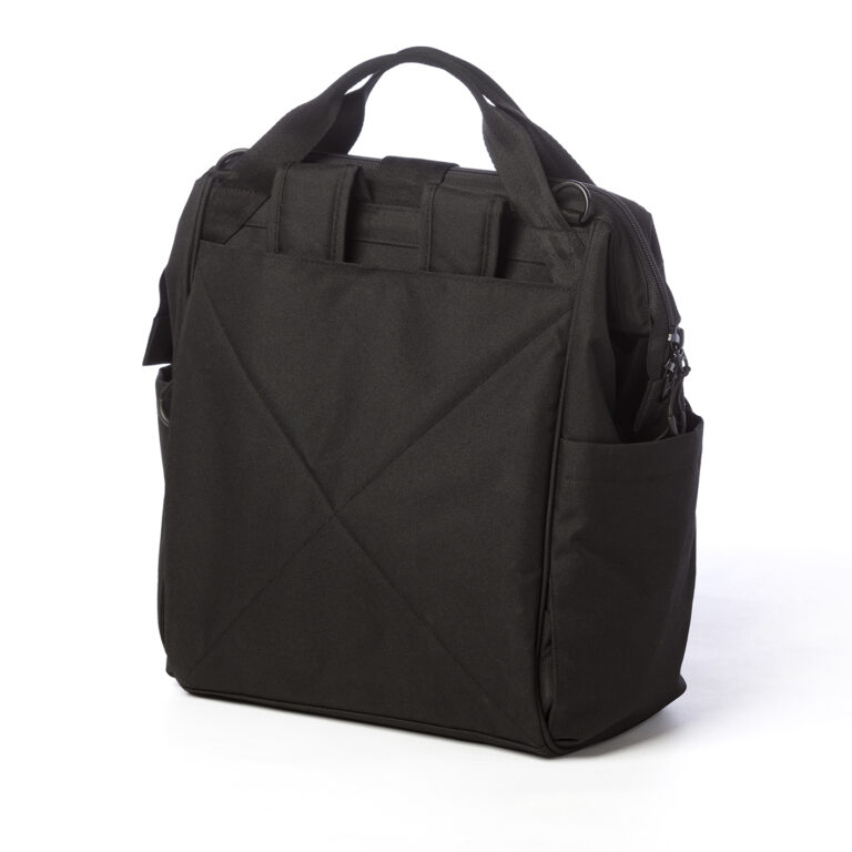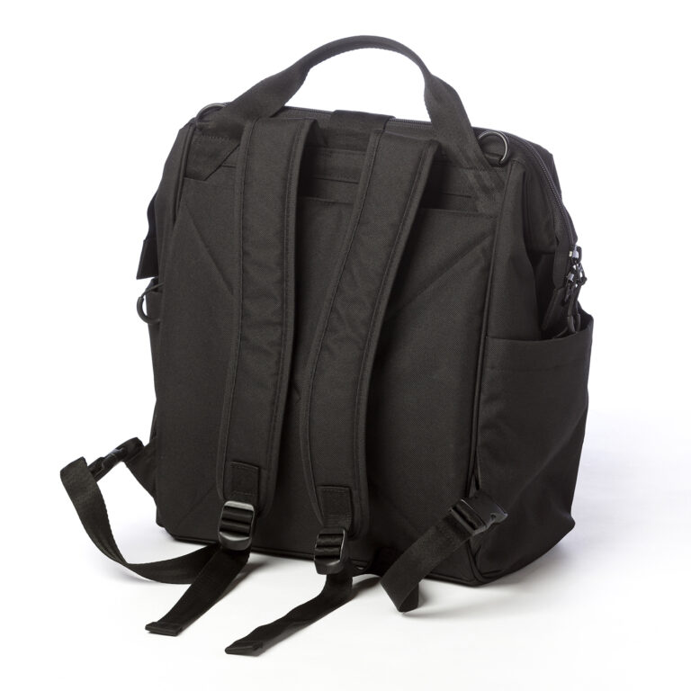 Přebalovací tašku snadno připevníte ke kočárku, můžete ji nosit jako běžnou tašku nebo dokonce jako batoh díky neviditelně skladným popruhům.