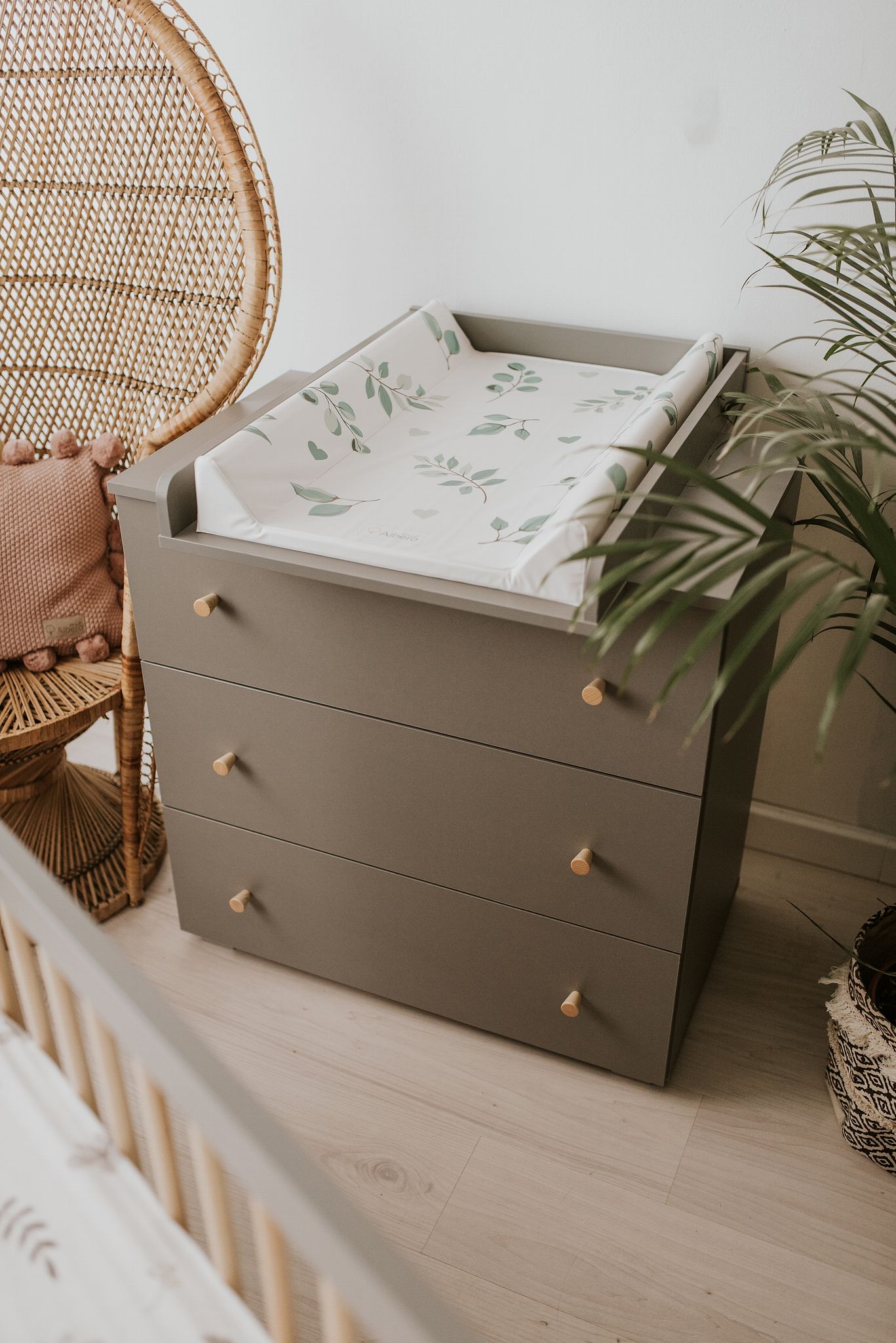Komoda nabízí praktický úložný prostor ve formě tří prostorných zásuvek, ideálních pro oblečení, doplňky i potřeby pro miminko.