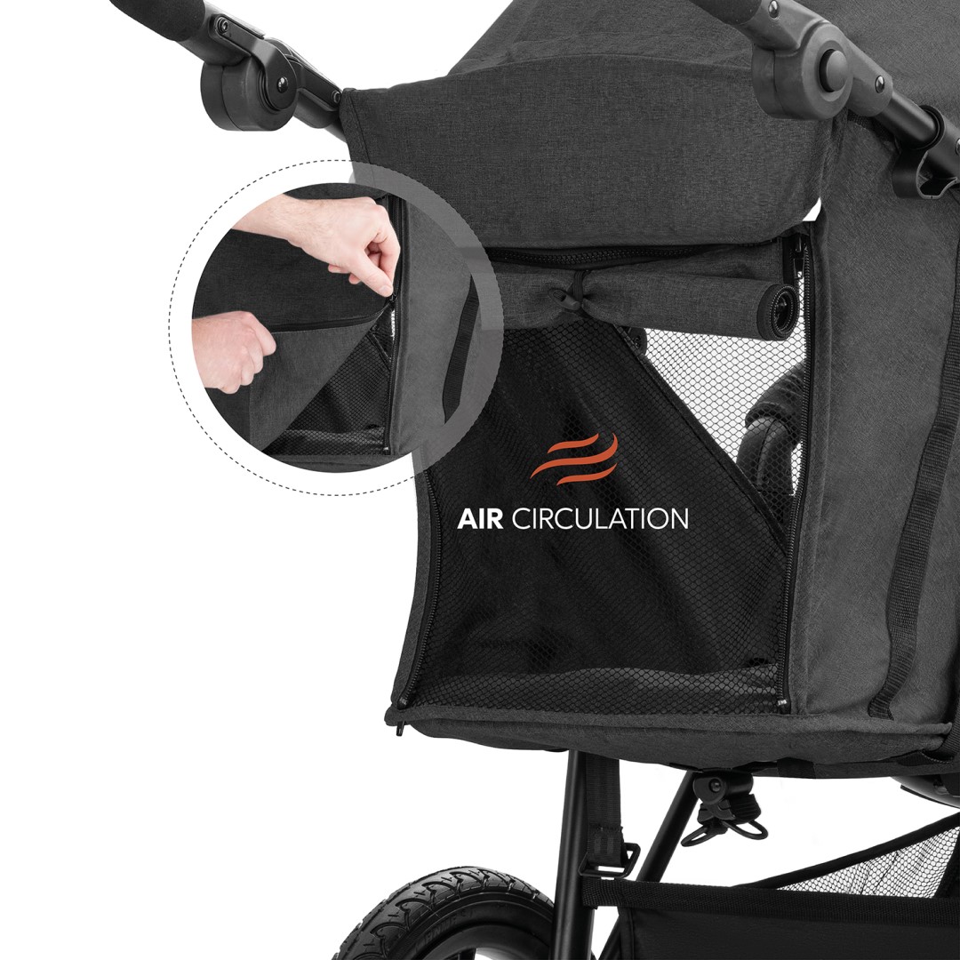 V horkých dnech jej můžete jednoduše otevřít, čímž se odkryje prodyšná síťová látka, která zároveň slouží jako výhledové okénko.
