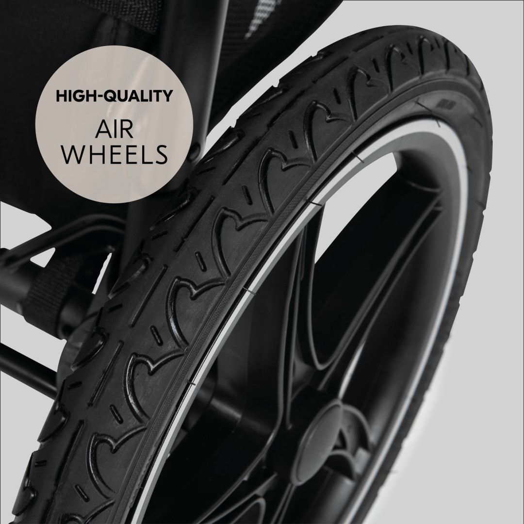 Vyrazte ven s tímto terénním fešákem za rodinným dobrodružstvím. Extra velká nafukovací kola zaručí jízdu s minimem otřesů. Kočárek díky otočnému kolu mistrovsky zdolá úzké zatáčky.