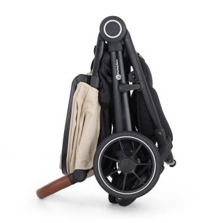 Stylové hnědé madlo a rukojeť z eko-kůže dodávají kočárku elegantní vzhled.