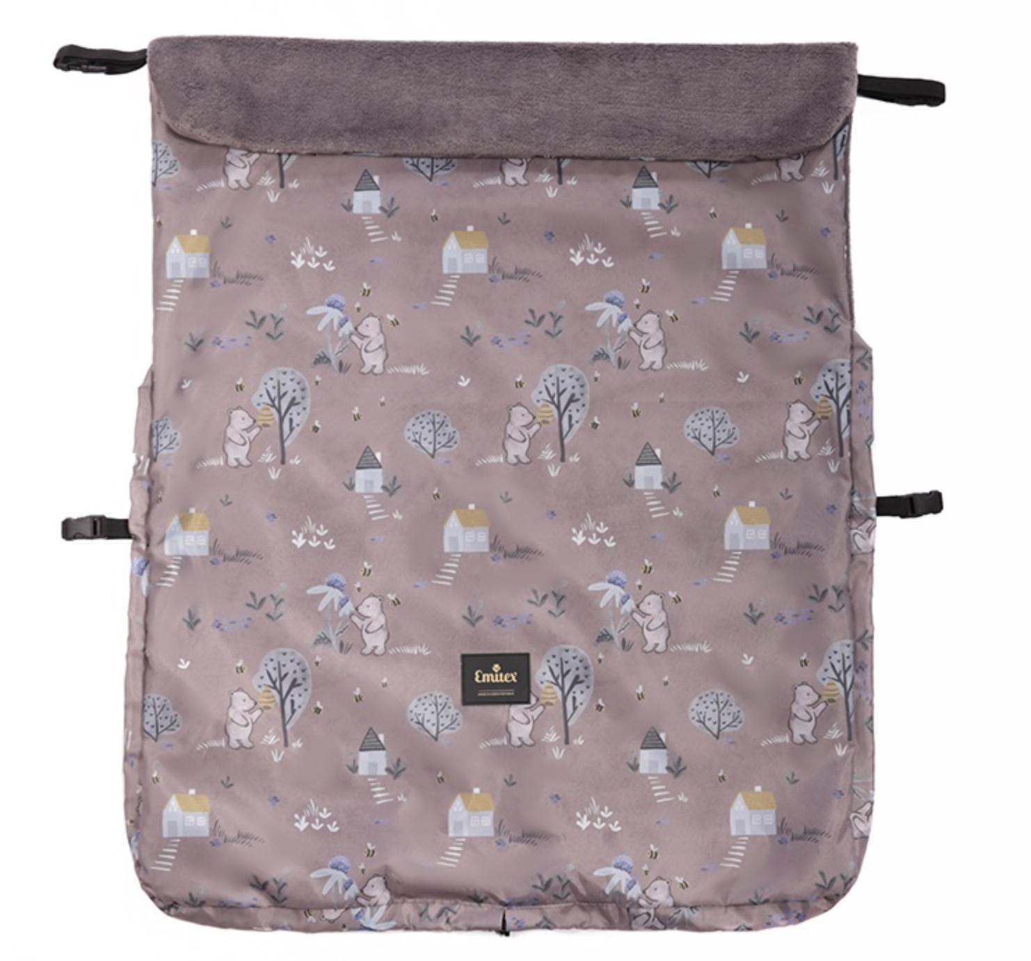 • Po roztažení spodní části se může nánožník použít jako deka k přikrytí dítěte, nebo jako hrací či přebalovací podložka.