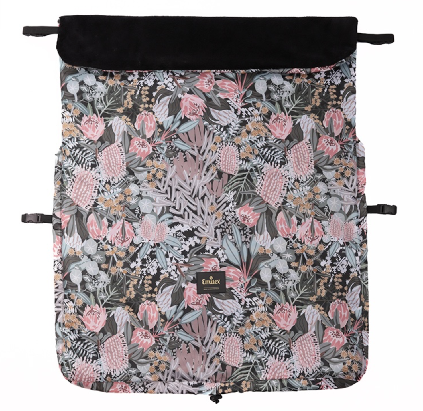 • Praktické je uchycení ke kočárku pomocí elastické gumy se sponou, což umožňuje uchytit nánožník pevně na různých místech.