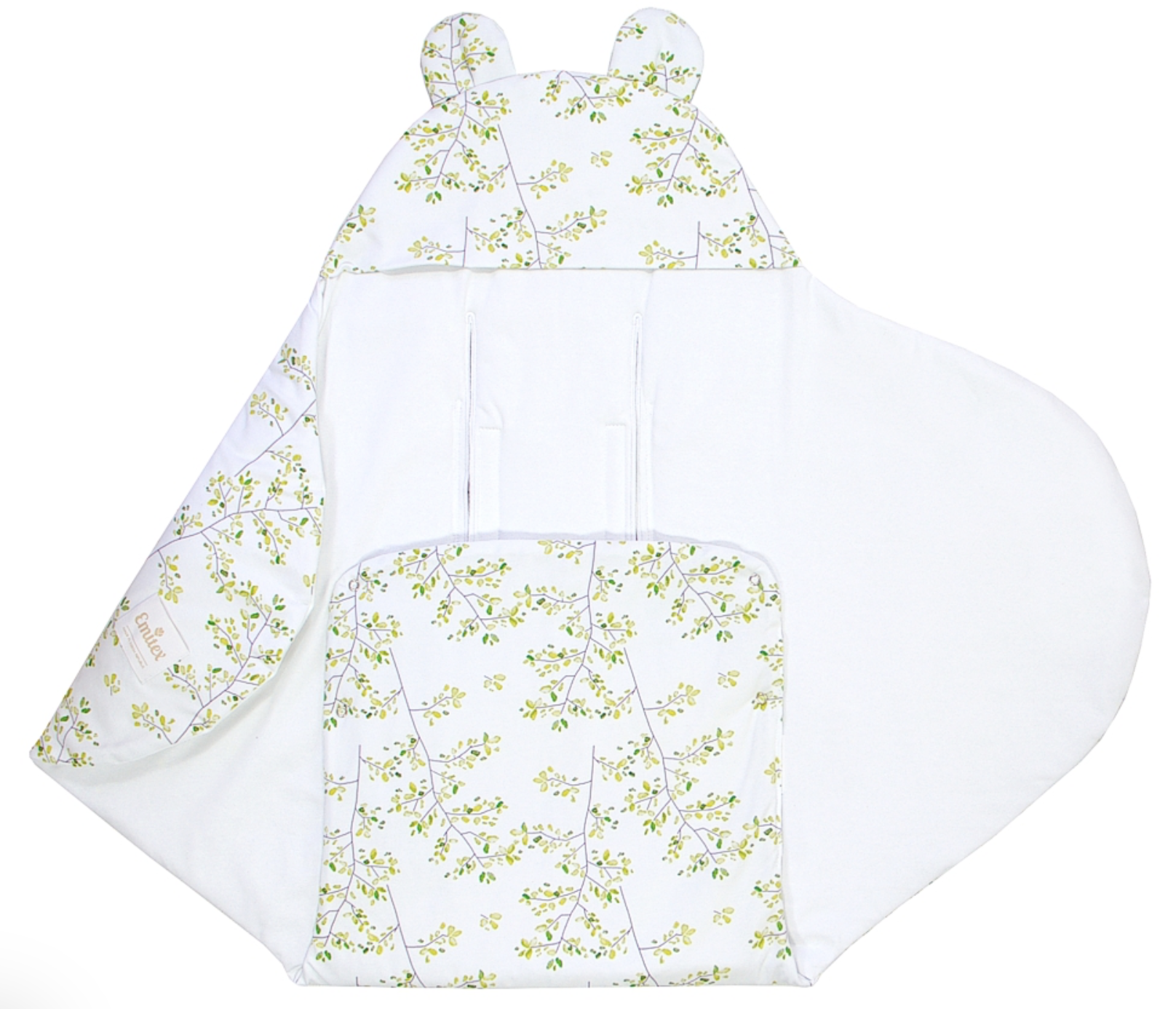• Designovým prvkem jsou roztomilá ouška, která dodají zavinovačce na atraktivnosti, a kapuce.