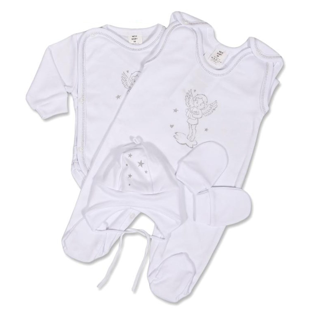 Krásná sada oblečení pro miminka s motivem andílka ve velikosti 56 pro narozená miminka.