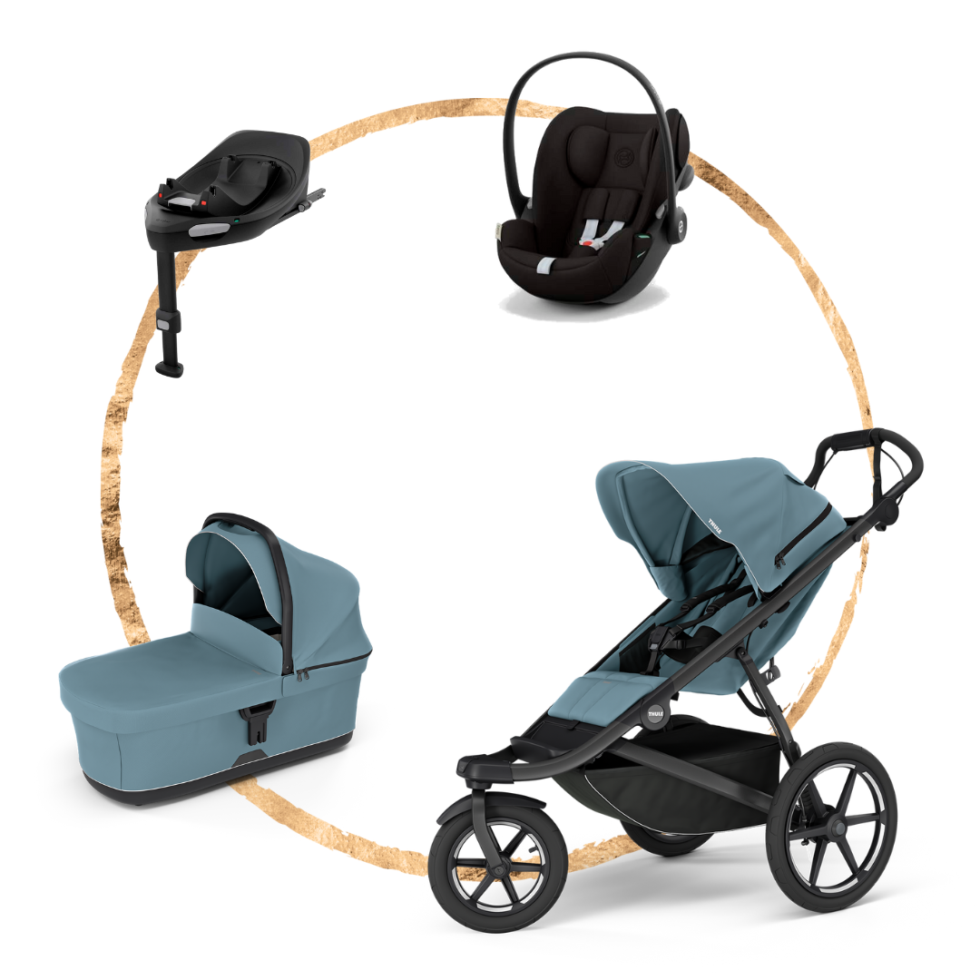 Set kočárku Thule Urban Glide 3 + hluboká korbička + autosedačka Cybex Cloud G + báze Cybex G. Vše, co potřebujete pro bezpečný a stylový start s vaším miminkem – v jednom dokonale sladěném setu.