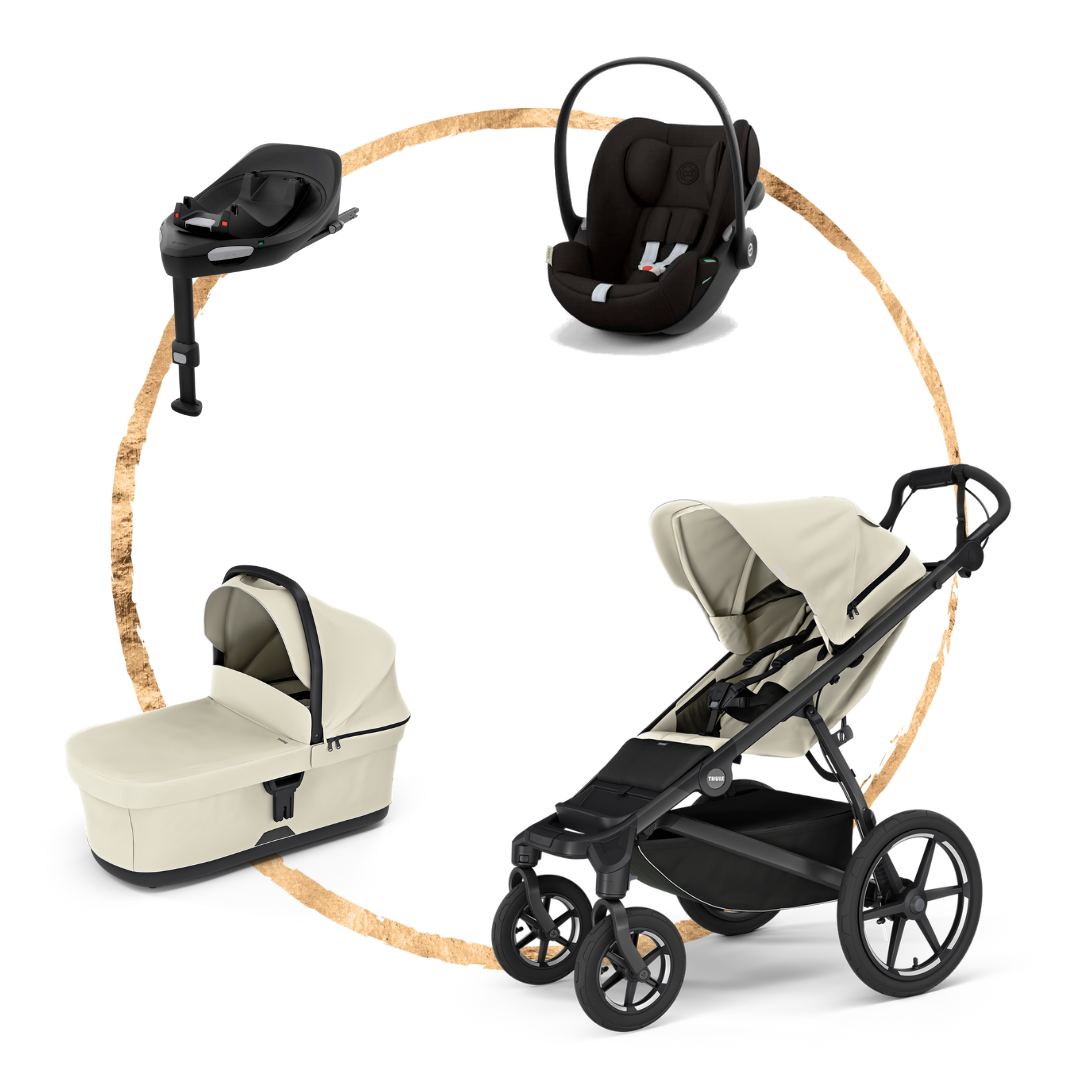 Set kočárku Thule Urban Glide 4 + hluboká korbička + autosedačka Cybex Cloud G + báze Cybex G. Vše, co potřebujete pro bezpečný a stylový start s vaším miminkem – v jednom dokonale sladěném setu.