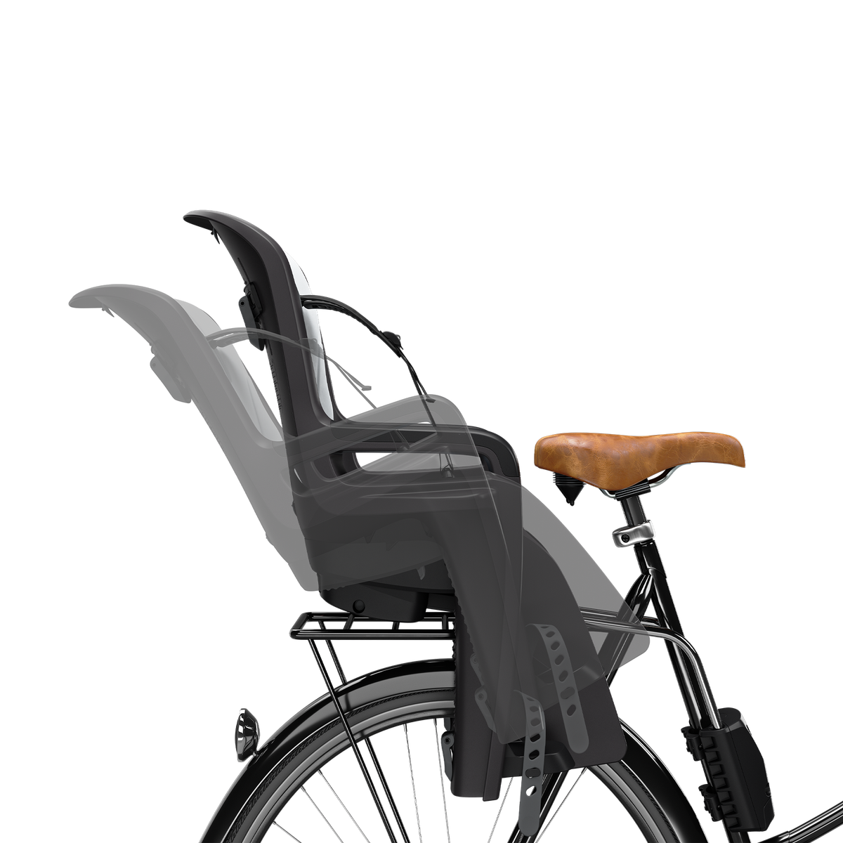 Dětská cyklosedačka má také sklápěcí funkci pro větší pohodlí a zdřímnutí na cestách.