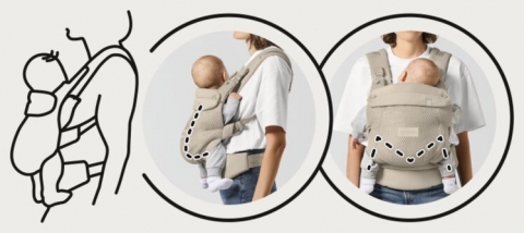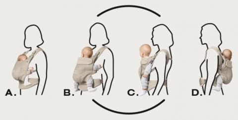 Čtyři ergonomické polohy přenášení vám dávají volnost dítě nosit, jak si přejete – vždy na blízko a s vhodnou podporou.